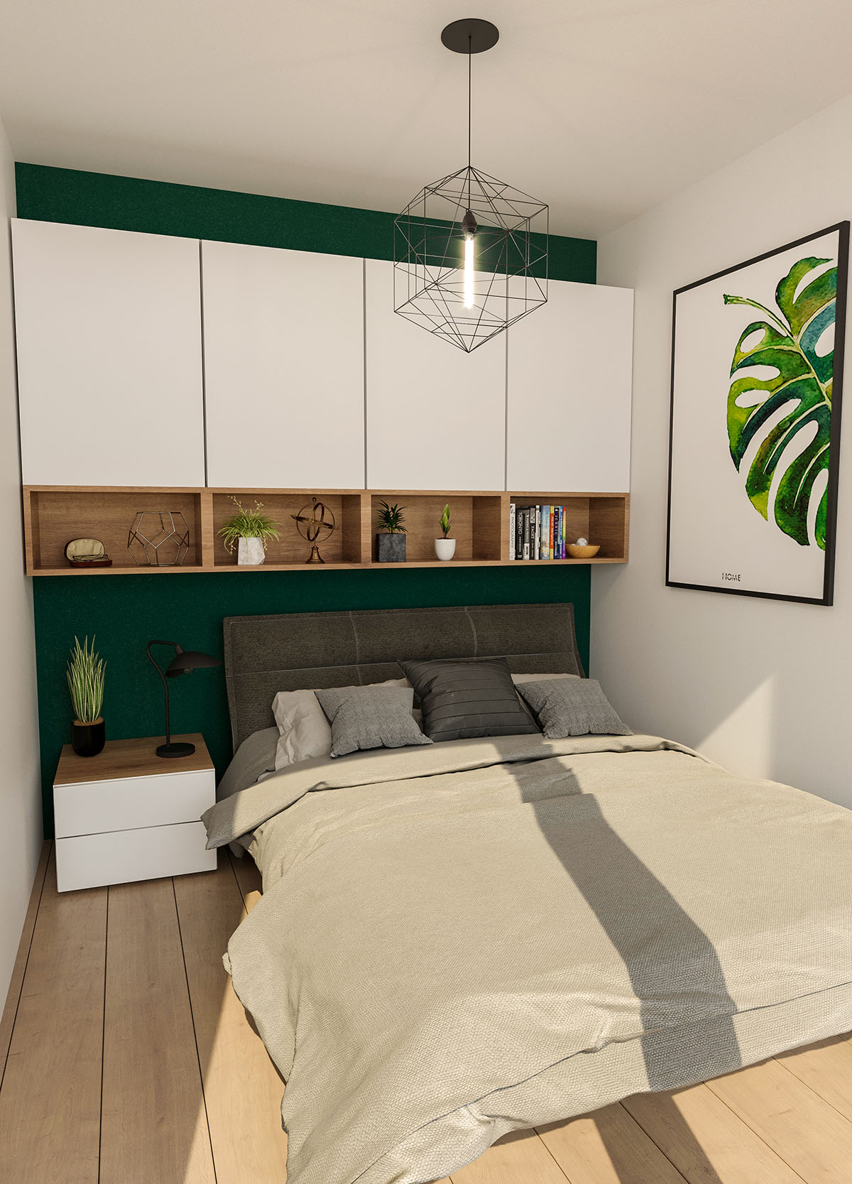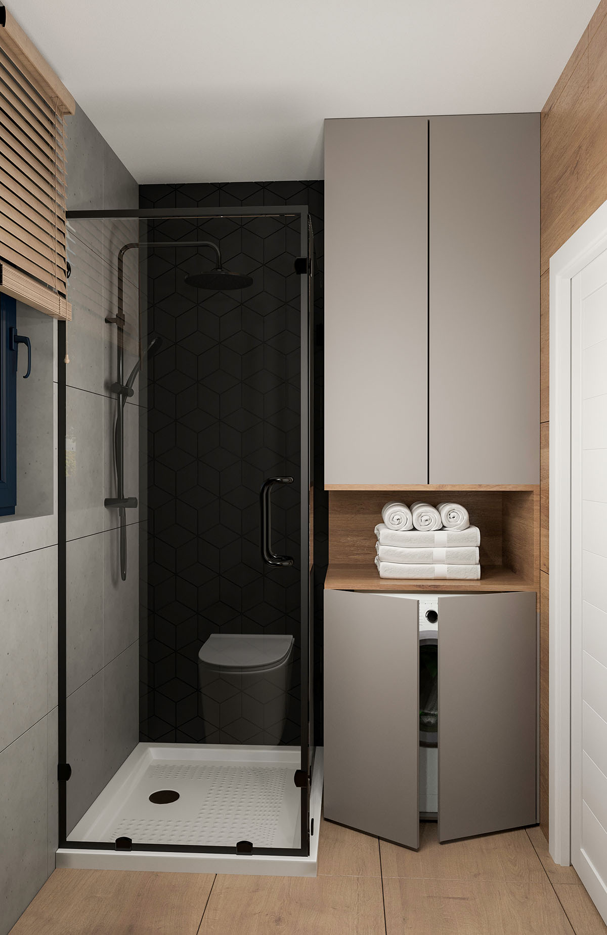 Outline area -34,5 m2 Usable area -27,5 m2 Living room with kitchen – 16,5 m2 Bedroom – 7,4 m2 Bathroom – 3,6 m2
